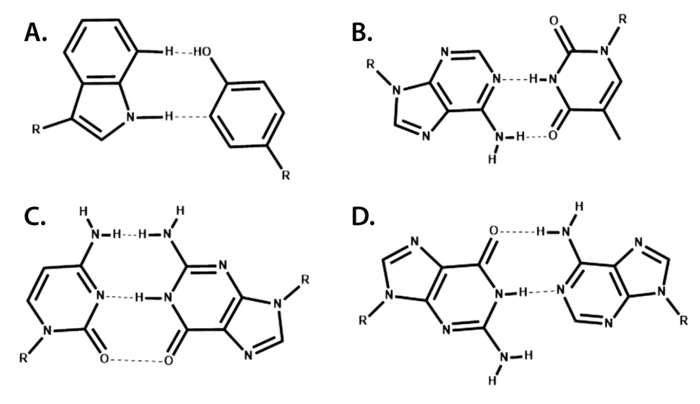 Which of the following nucleotide base pairs accurately illustrates a standard adenine-thymine (AT) base pair?